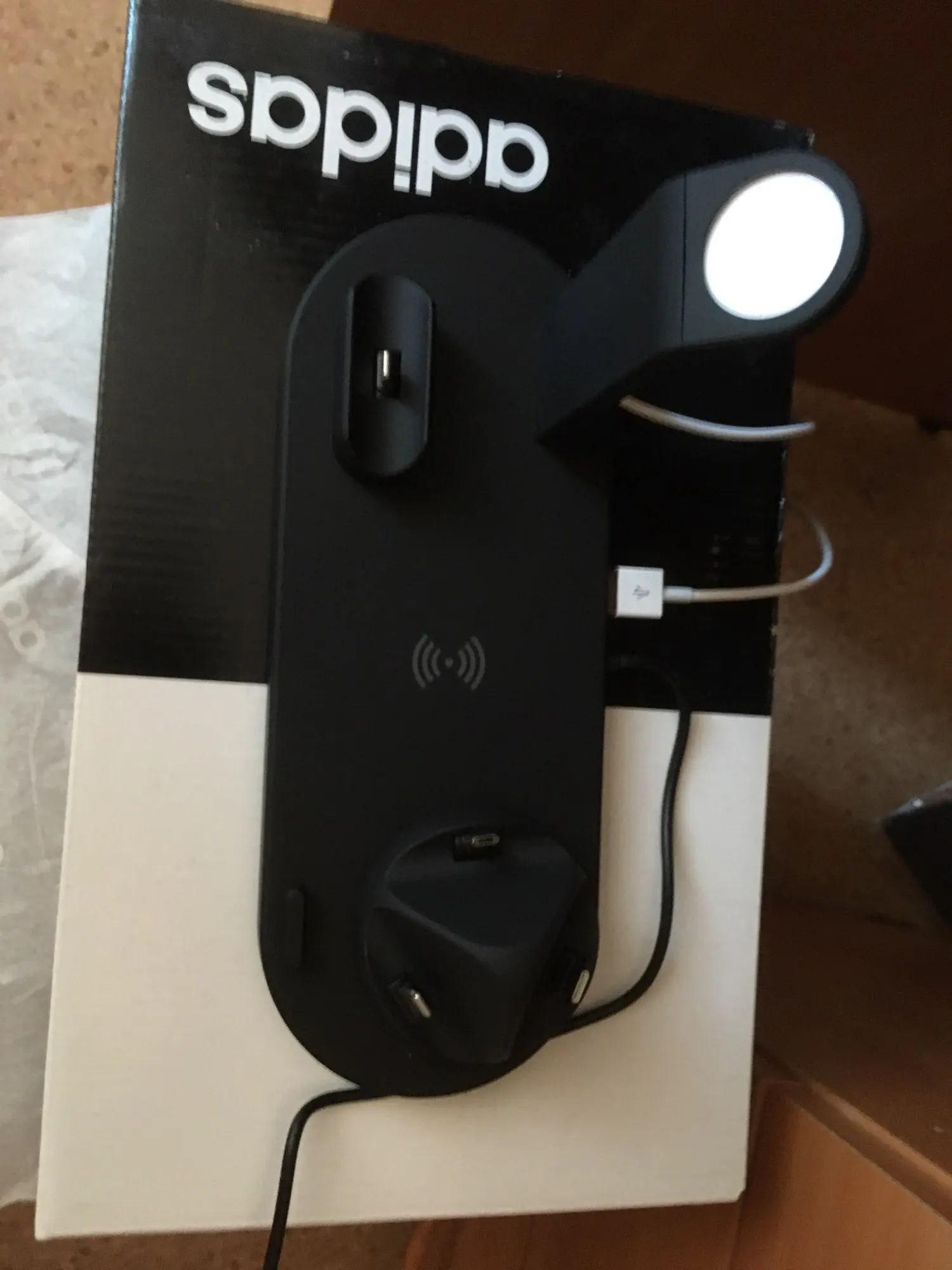Швидка доставка, протягом 16 днів у Харків через Міст-експрес. Пристрій чудовий. Всі зарядні місця працюють. Лише зарядка для годинника не тримає його під кутом, заслабкий магніт. Але рідна зарядка від годинника чудово встала на це місце і тримає годинник добре.