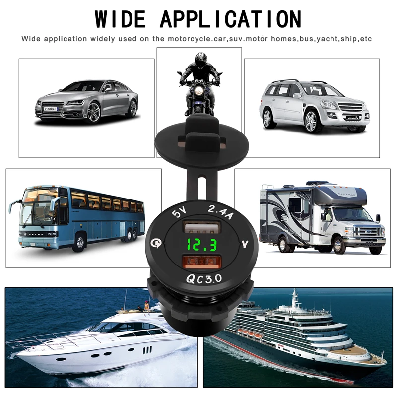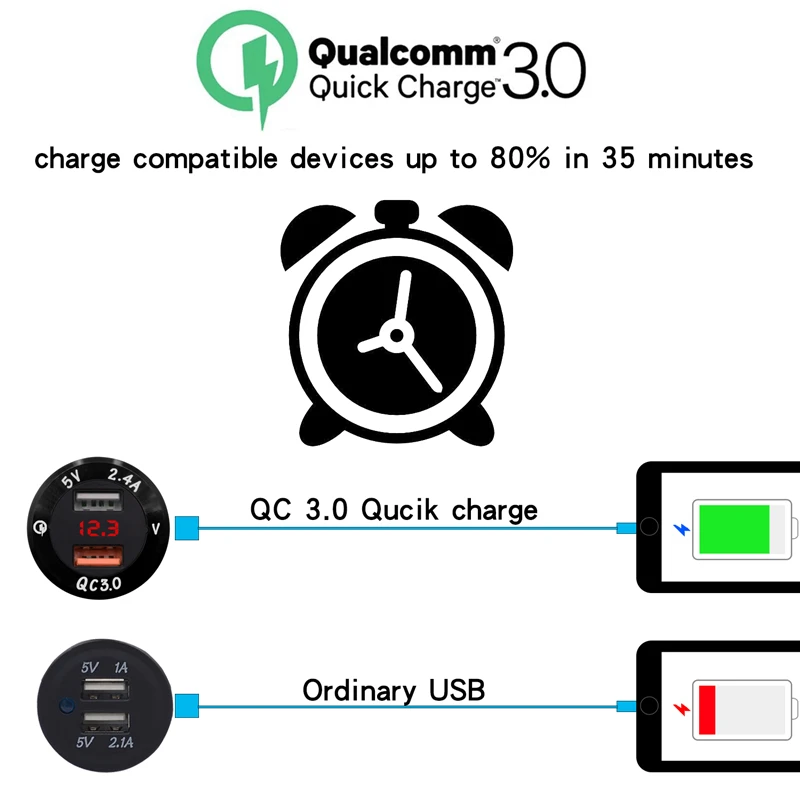 Товар включает в себя: 1x QC 3,0 двойной USB разъем крепление Автомобильный Адаптер зарядного устройства для телефона 5В 3.4A 2x изолированные клеммы