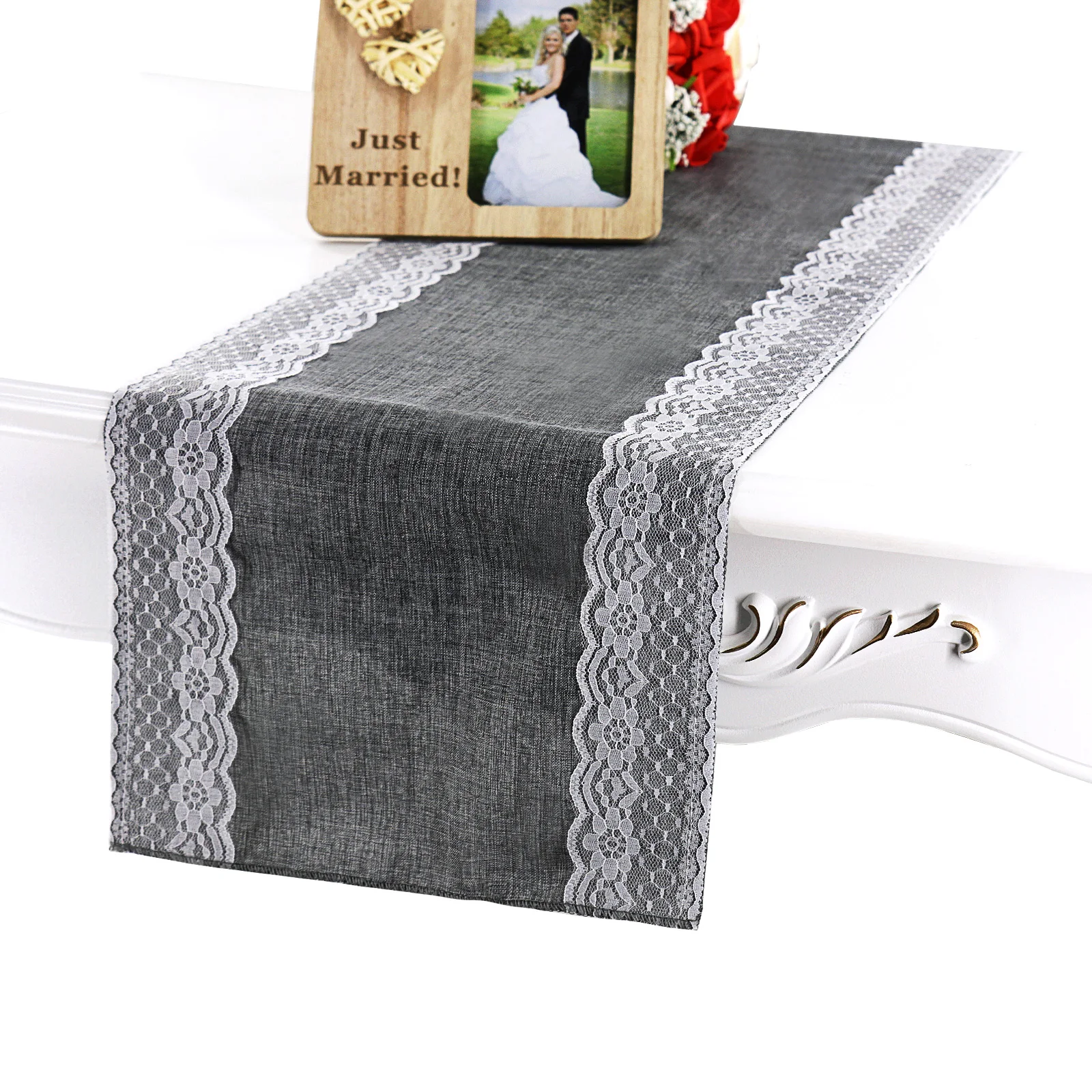 Винтажная кружевная джутовая серая настольная дорожка, Оригинальный...