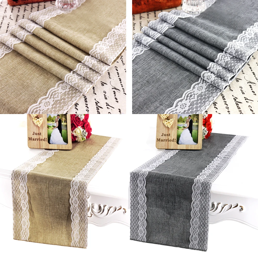 Деревенская дорожка для стола Hessian, Холщовый джутовый льняной, с двойным кружевом, для дома, отеля, дня рождения, праздника, домашний текстиль