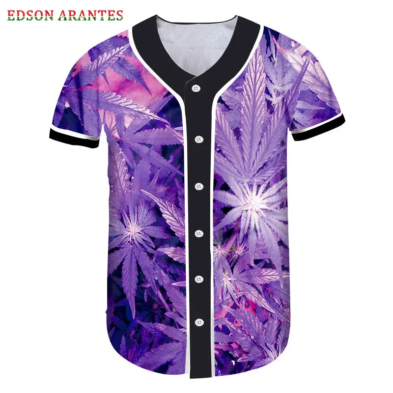 Новинка, 3d Фиолетовый принт сорняков, Бейсбольная Футболка в стиле хип-хоп, унисекс, летние футболки с пуговицами в стиле панк-рок, оригинальные модели 6XL