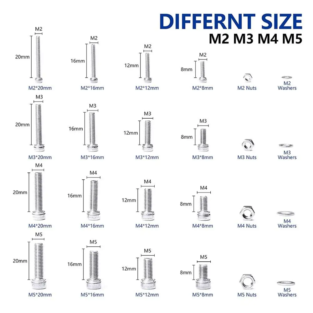 Широкое применение: M2 M3 M4 M5 с шестигранной головкой Винты шайбы и гайки Ассортимент Набор служит широкий спектр использования и для профессионалов, любителей, помещиков, ремонтников, других DIY.