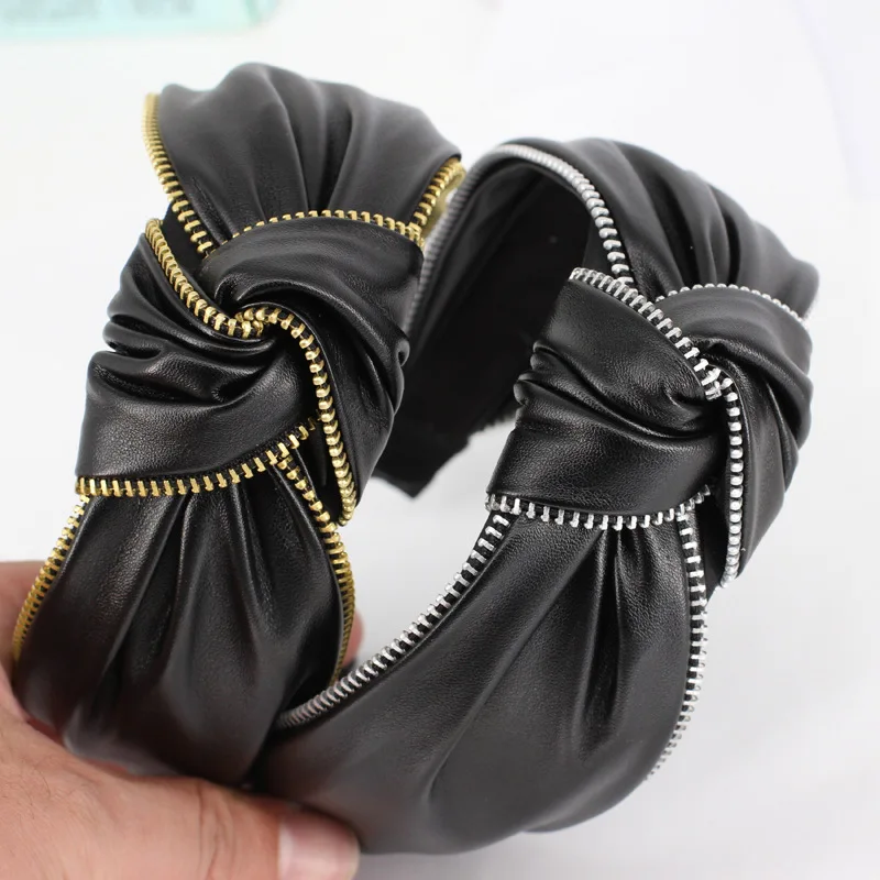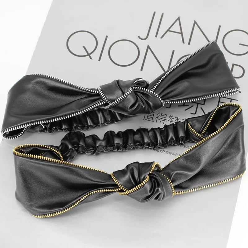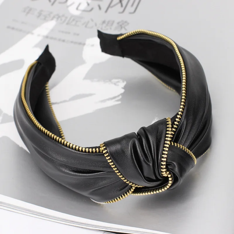 Ободок Haimeikang женский с узлом, модный обруч из черной кожи на молнии, аксессуар для волос, резинки для волос с узлом