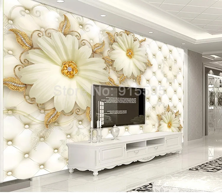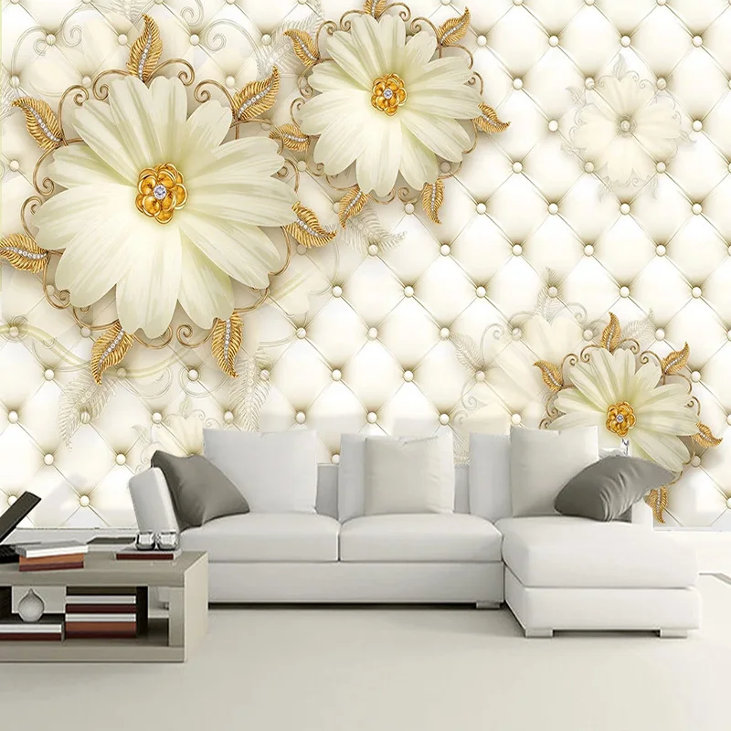 Пользовательские 3D обои самоклеющиеся золотые украшения цветок мягкая сумка большая роспись гостиной диван ТВ фон обои для стен