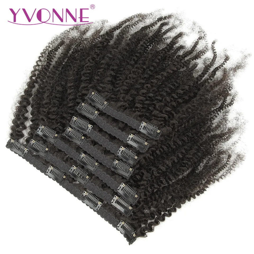 YVONNE 4B 4C курчавые Coily на заколке человеческие волосы для наращивания бразильские натуральные волосы 7 шт.компл. 120 г натуральный цвет