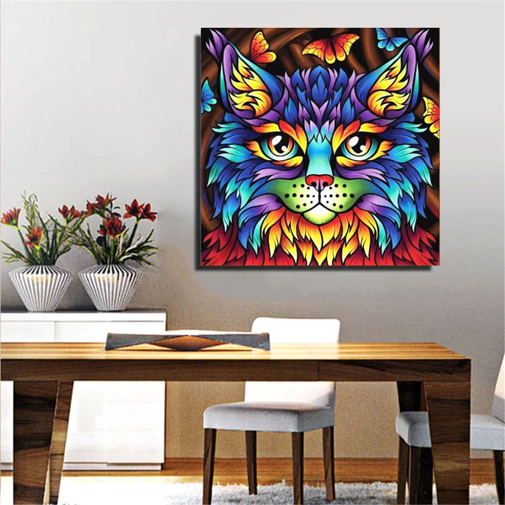 HUACAN полностью квадратнаякруглая Алмазная Картина Кот Алмазная вышивка Бриллиантовая мозаика с животным картина Стразы искусство ремесла Шитье