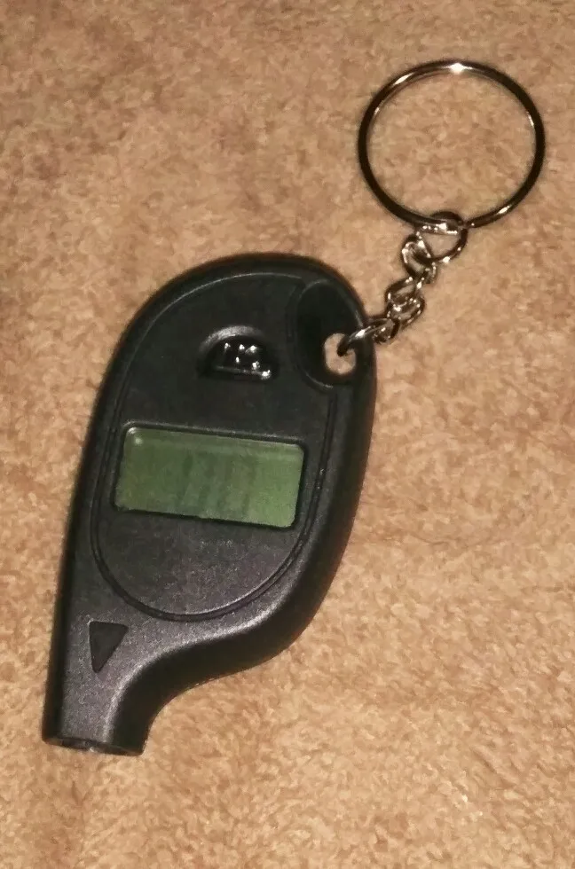 маленькая штучка, как брелок, но что то показывает, и вроде бы даже точно, надо бы сравнить с заправочным манометром