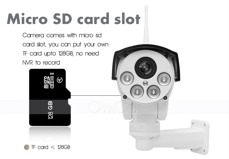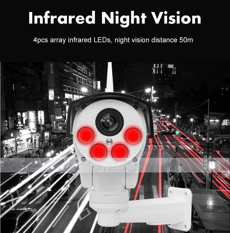 Этот IP-камера оснащен новейшим 5x оптический зум (объектив 2,7-13,5 мм) или 10х оптический зум (срок службы линзы 4,9-47 мм) с автофокусом объектив с переменным фокусным расстоянием, с функциями Wi-Fi, так и проводного подключения, 2-мегапиксельная/5-мегапиксельная запись видео и аудио/звука, дневное и ночное IR-CUT, обнаружение движения, макс. 128 ГБ возможность хранения карт Micro SD и водонепроницаемость IP66, Который широко используется в квартирах, офисах, супермаркетах и других местах.