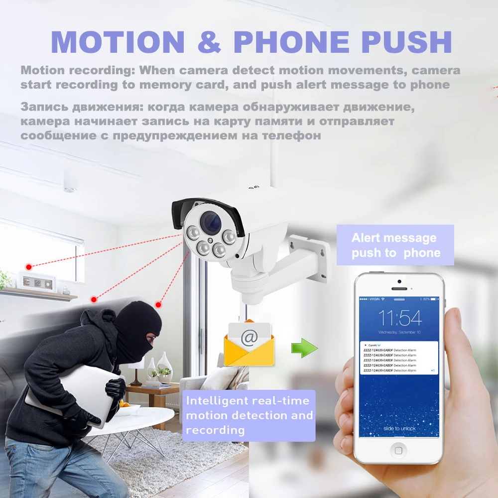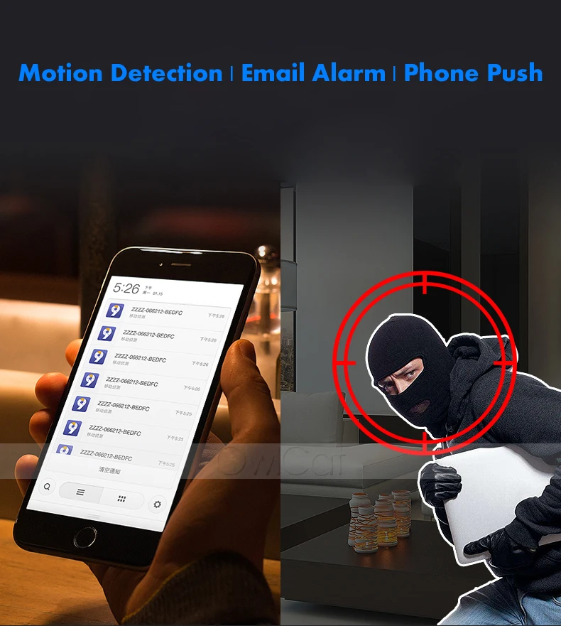 Поддержка записи событий обнаружения движения и оповещения по электронной почте, мгновенное оповещение может быть отправлено на ваш адрес электронной почты одновременно