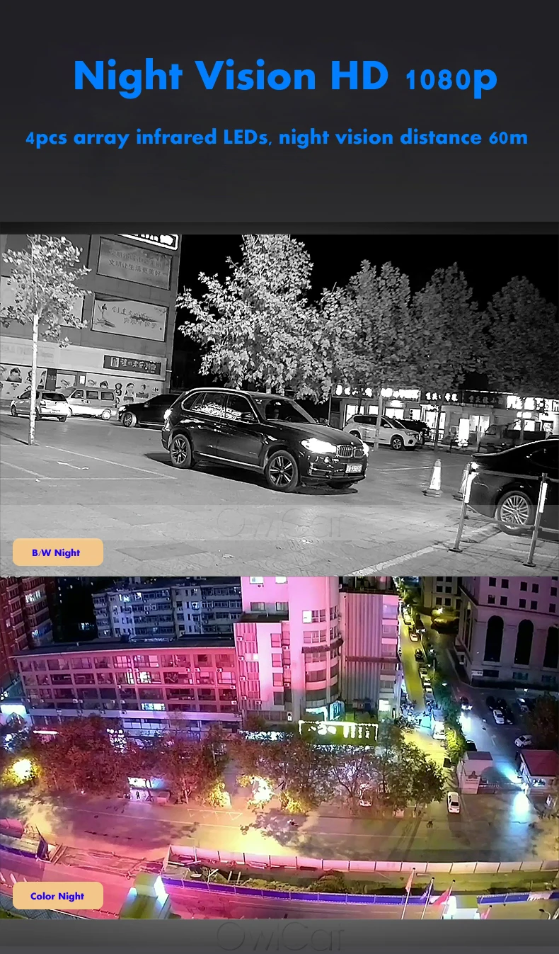 Встроенный IR-CUT, 4 инфракрасные IR-LED-лампы обеспечивают четкую картинку днем и ночью, ИК-расстояние около 60 метров