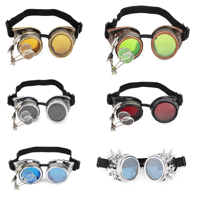 Цветные готические очки-калейдоскопы FLORATA, для косплея, в винтажном стиле, с заклепками, защитные очки в стиле стимпанк