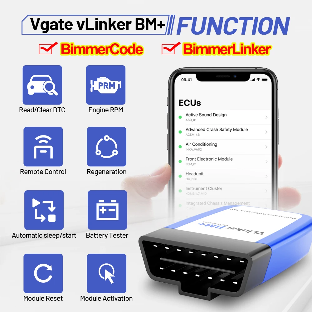 Функция Vgate vLinker BM + идеально совместима с Bimmercode/Bimmerlink: