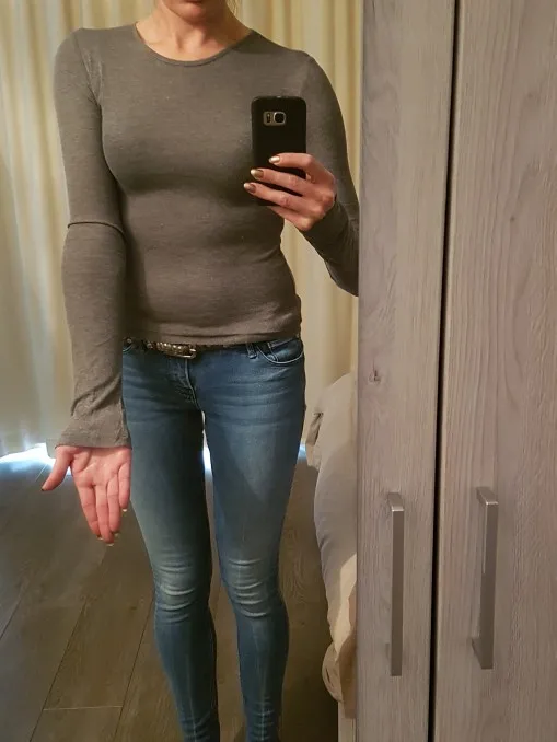 Все как на фото. На российский 42 идеально, тянется. Рукава очень длинные, края не обработанные. Серый цвет очень красивый. Кофта не доходит до середины бедра на высокий рост, т.е. достаточно короткая.