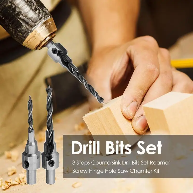 Набор сверл для зенковки, комплект из 3 ступенчатых насадок для отверстий под петли