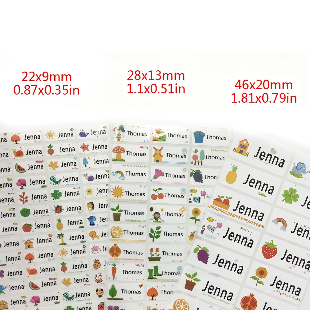3 размера, Детские милые наклейки с мультяшным рисунком и именем на заказ, водонепроницаемые этикетки для детей, персональные Скрапбукинг, школьные принадлежности