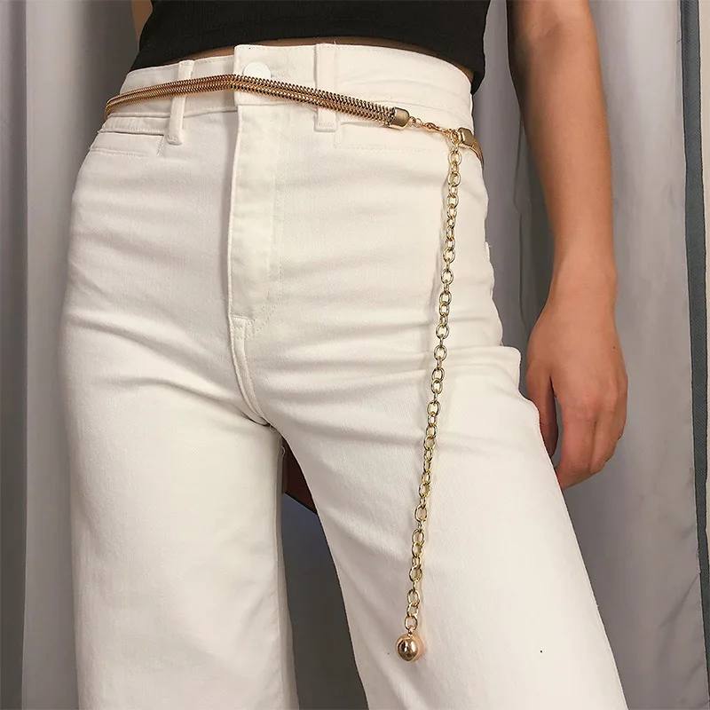 Ремень-цепочка женский Универсальный золотистыйсеребристый, Длинная кисточка, цепочка