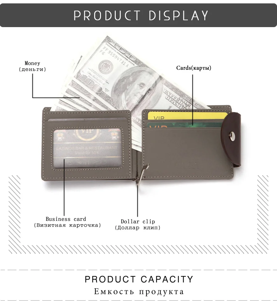 Кожаный кошелек CUIKCA, тонкий кошелек с отделением для монет, зажимом для денег и карт, кошелек на молнии для мужчин и женщин, держатель для ID и кредитных карт