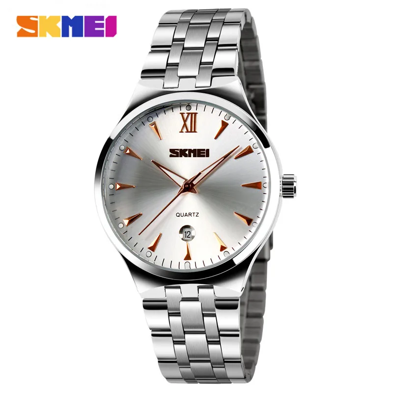 SKMEI мужские часы, модные кварцевые наручные часы, водонепроницаемые часы для пар, мужские наручные часы из нержавеющей стали