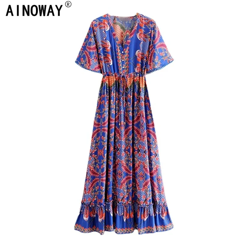 Винтажные шикарные женские элегантные пляжные богемные Макси-Платья...
