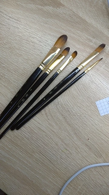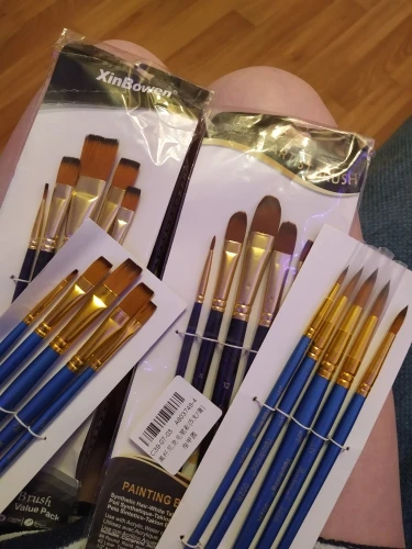 Очень хорошие кисти за такую цену. Если покупать такого качества кисти отдельно в обычном канцелярском магазине то выйдет намного дороже. Упругие, не секутся, краску наносят хорошо. Из минусов немного кривая кисточка номер 2, но в работе это не заметно,а также 6 и 8 почти одинаковые по размеру и двойку можно было бы поменьше сделать, больше вата она для 2,а так всё отлично) Также пришли очень быстро, за 2 недели или меньше(посылки совместили)