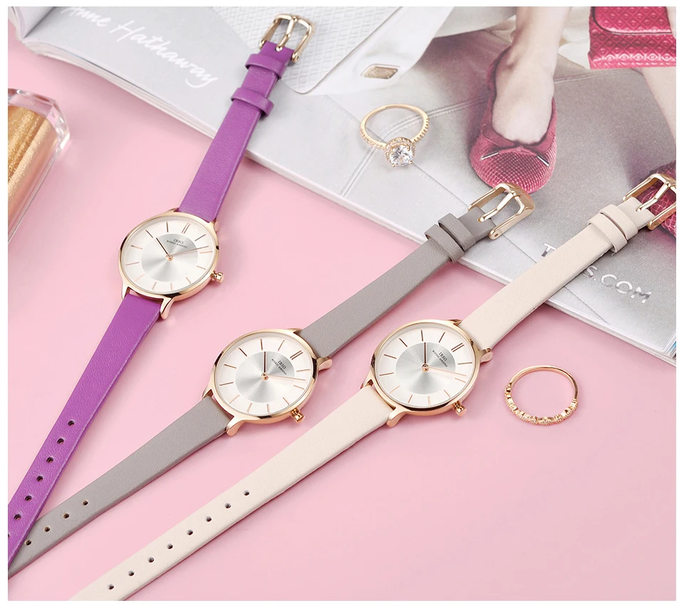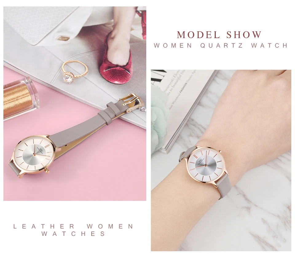 Женские ультратонкие кварцевые часы с ремешком из натуральной кожи