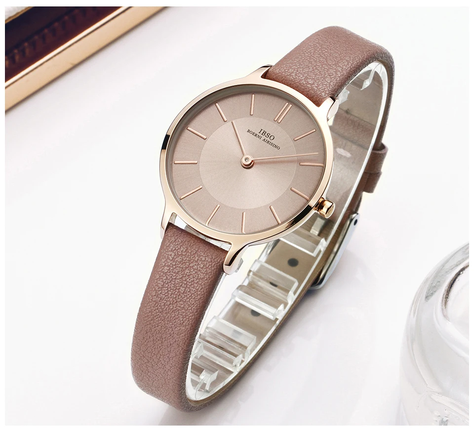 Женские кварцевые часы IBSO, ультратонкие, из натуральной кожи, 8 мм