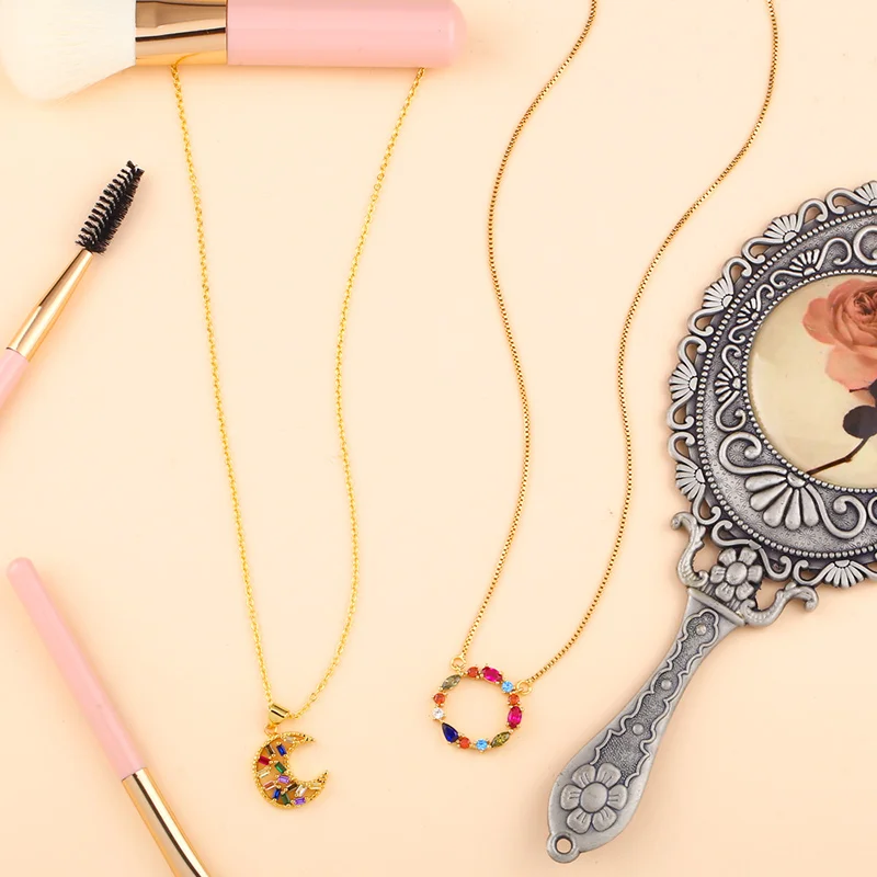 FLOLA изящное ожерелье с Луной, длинное ожерелье с кубическим цирконием, разноцветное колье с фианитом, цепочка, 24 К, Золотое ювелирное изделие, женское высококачественное ожерелье nkep29