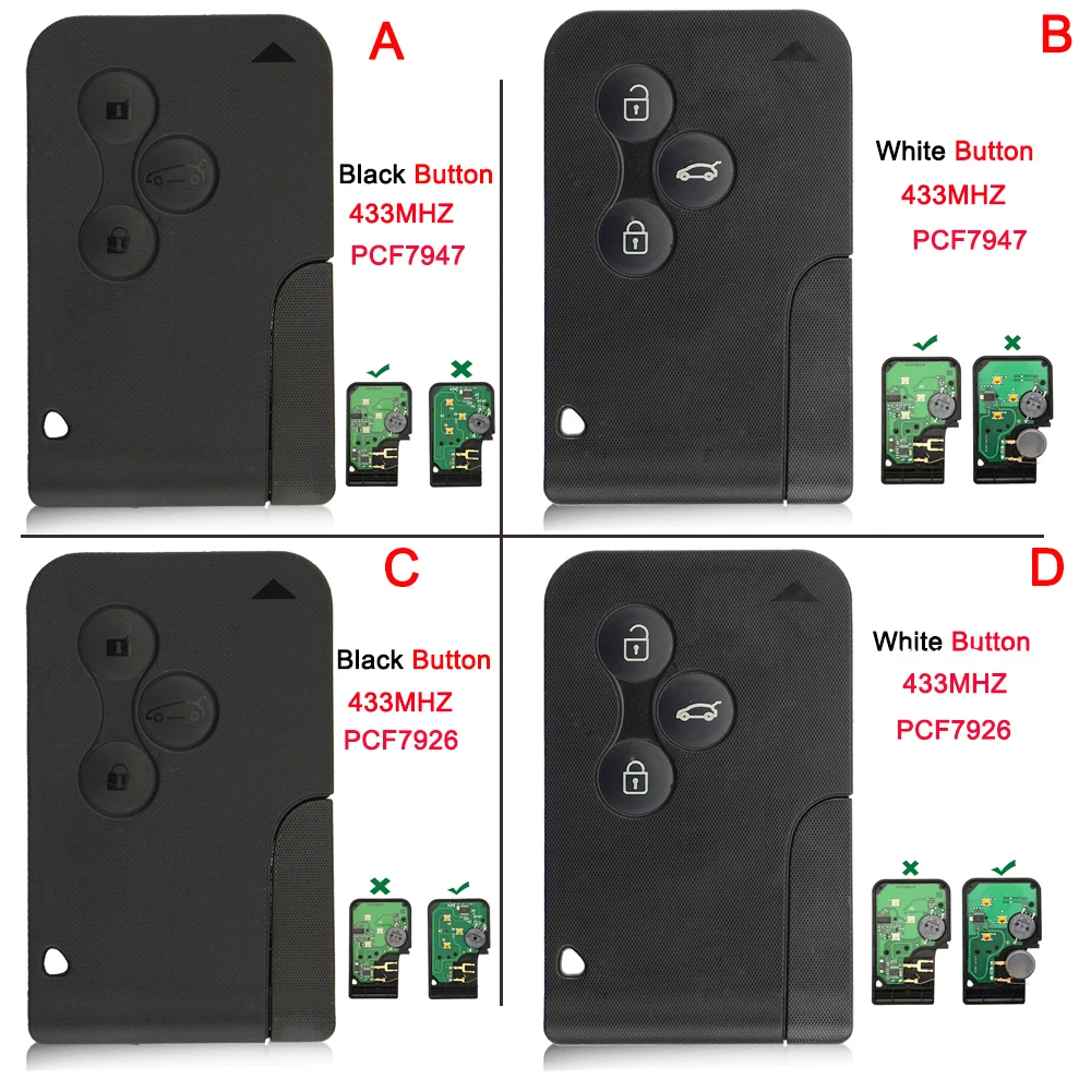 Смарт-ключ для автомобиля OkeyTech 5 шт., 3 кнопки для Renault ключ Megane 2 Scenic Card II Grand 433 МГц ID46 PCF7926 PCF7947 чип
