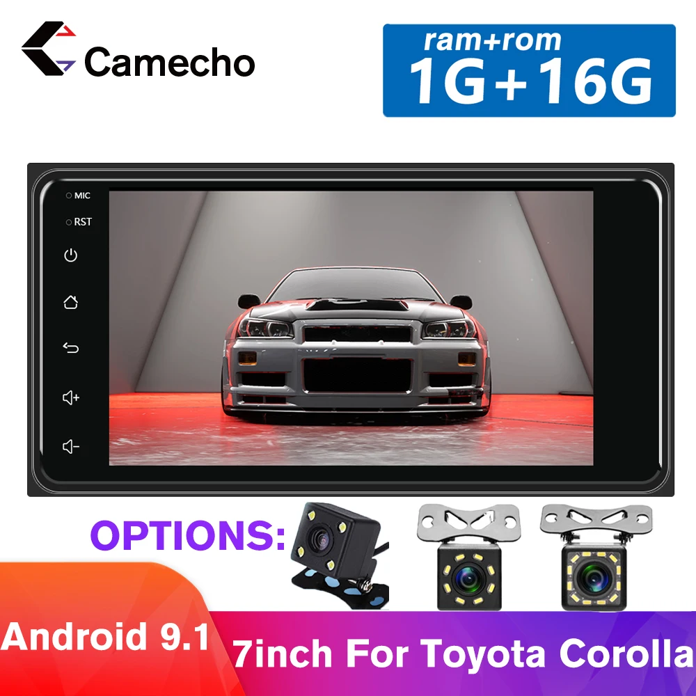 Автомобильный мультимедийный плеер Camecho для Toyota Corolla, стерео-система на Android 9,1, с GPS, FM-радио, 1 ГБ ОЗУ, 16 Гб ПЗУ, экран 7 дюймов, типоразмер 2 Din
