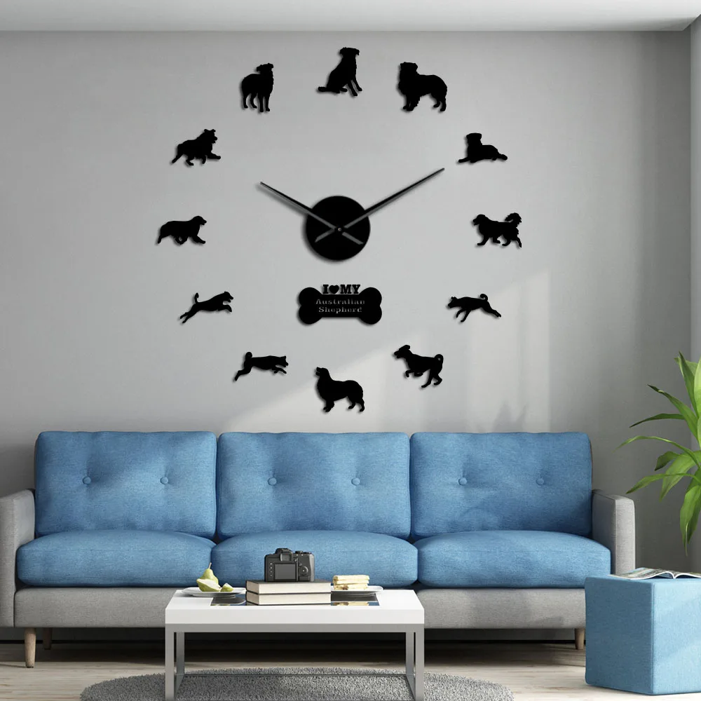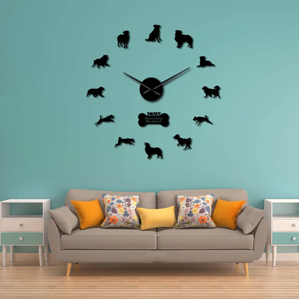 Австралийская овчинка, часы большого размера для самостоятельной сборки, самоклеящиеся настенные 3d-часы для самостоятельной сборки, портрет Бигля для любителей собак