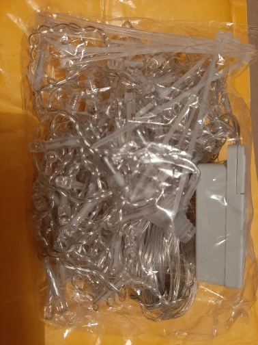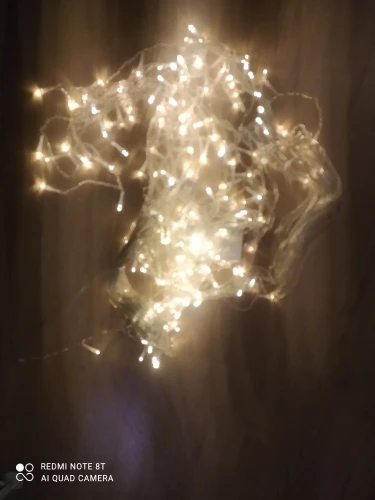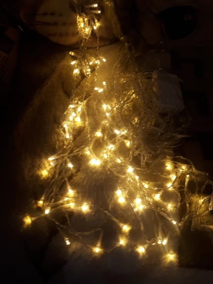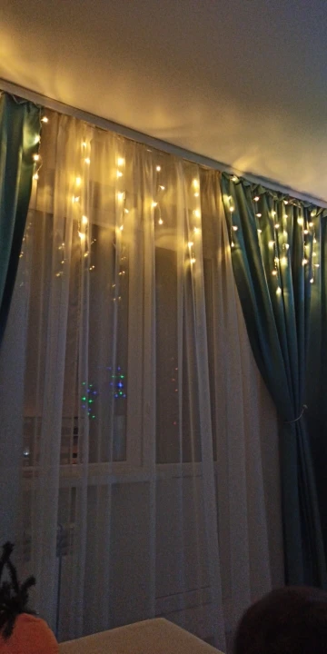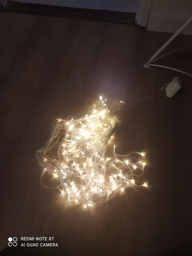 Гирлянда понравилась. Свет не слишком яркий, приятный (тёплый белый). Несколько режимов свечения. Повесила её, сложив вдвое, чтобы нити были почаще. Также заказала к ней удлиннитель. Скорость доставки средняя. Хорошо,что успела приехать до Нового года. Спасибо!