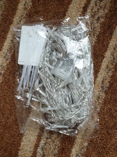 Пришла быстро, в обычном пакетике, в комплекте идут держатели. Сама гирлянда работает, мне понравилась