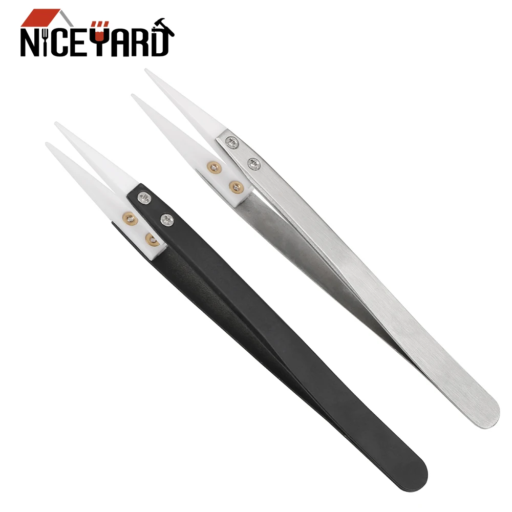 Керамический Пинцет NICEYARD, антистатический высокотемпературный пинцет с ручкой из нержавеющей стали, Прямой пинцет