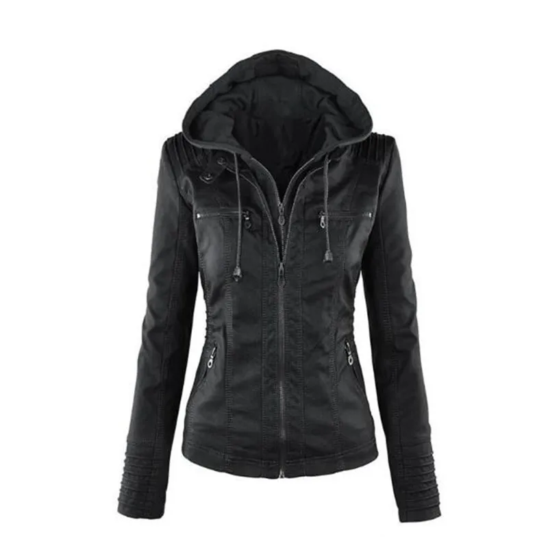 2021 модная зимняя куртка из искусственной кожи, Женские базовые куртки, черная приталенная мотоциклетная куртка с капюшоном, женские пальто, женская модель