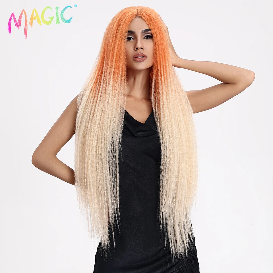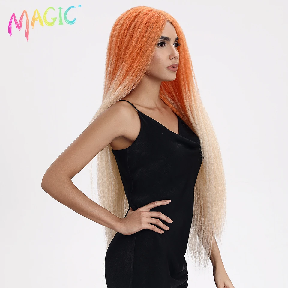 Волшебные афро кудрявые искусственные волосы с эффектом омбре, синтетические кружевные парики для черных женщин, термостойкий косплей, кудрявый прямой парик