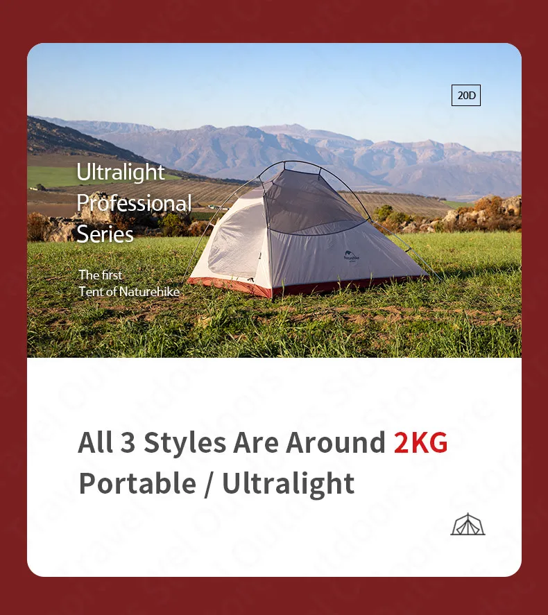 Палатка для кемпинга Naturehike Cloud Up, сверхлегкая, с силикагелем, для 1, 2, 3 человек, 20D, одноместная, двухместная, с бесплатным ковриком