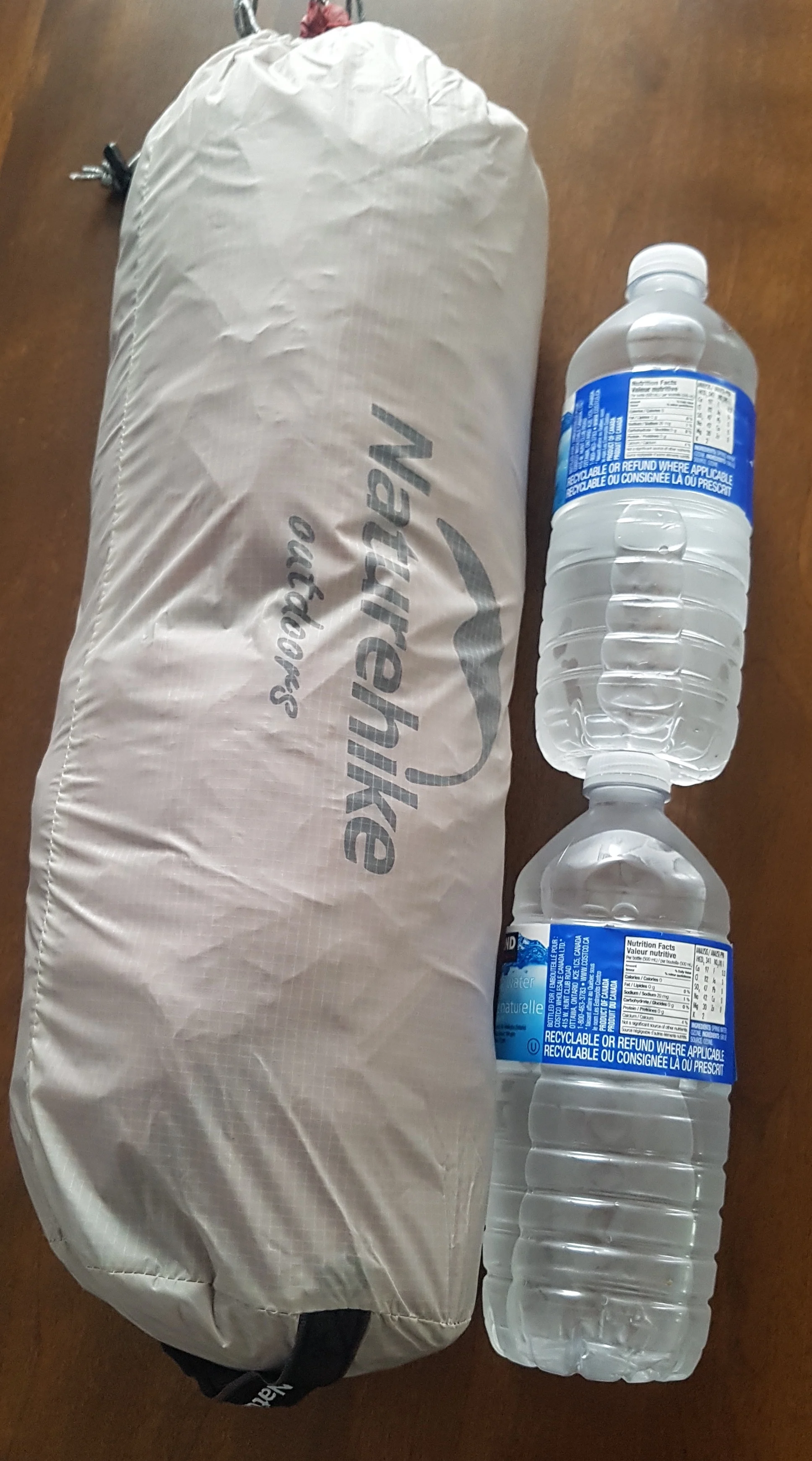 Общий вес весов был 1503 г палатки + 247 г коврика = 1750 г всего Палатка быстро и легко поднялась. Нейлон 15D похож на сухой мешок, который у меня есть. Возможно, не подходит к истиранию, но подходит для использования.