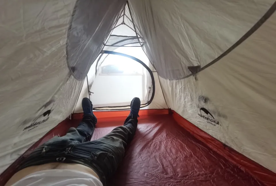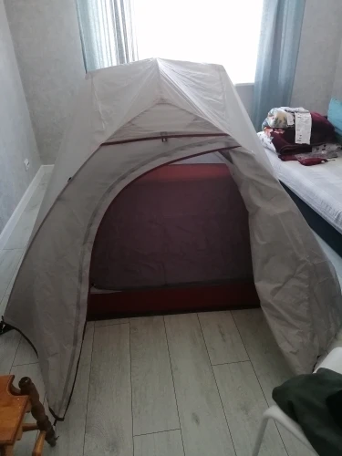 Очень быстрая доставка! Вес (без дополнительного пола и дополнительных средств) составляет 1887 г. Алюминиевые стержни весят около 600 г. Хорошая вентиляция, внутренние стенки немного узкие для людей по бокам.