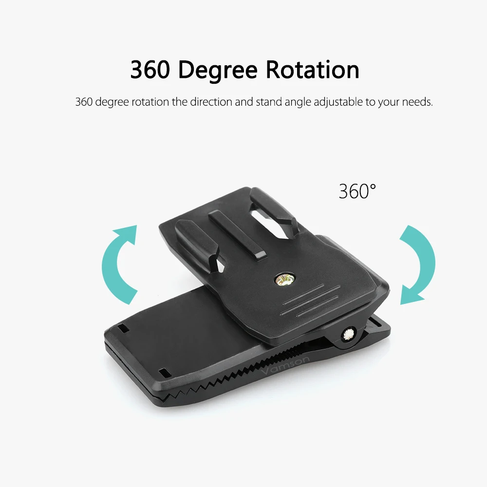 Зажим для рюкзака Vamson для GoPro Hero 7, 6, 5, 4, 3 +, вращение на 360 градусов, быстрое зажимное крепление для Xiaomi yi, SJCAM, SJ4000, VP513