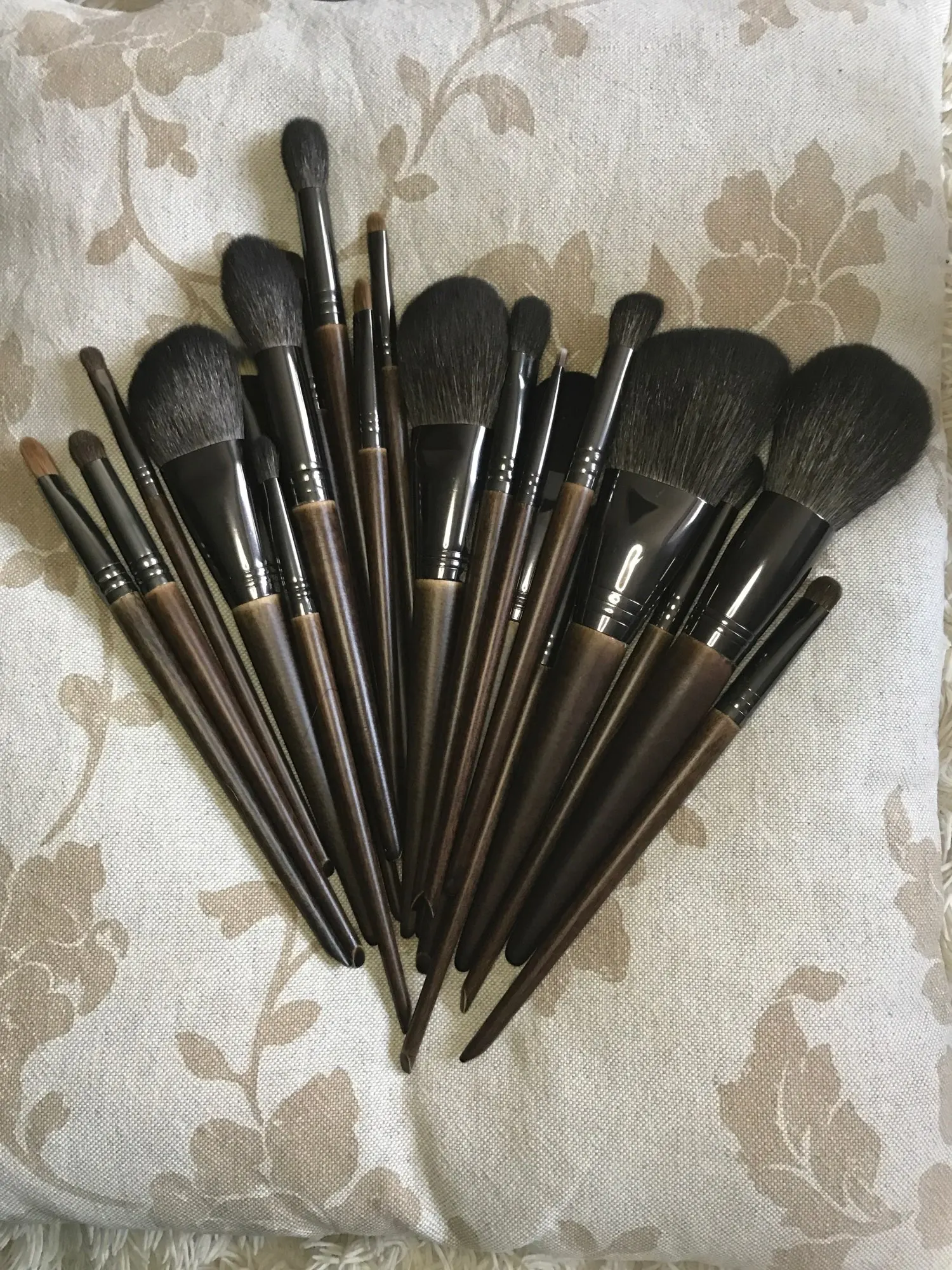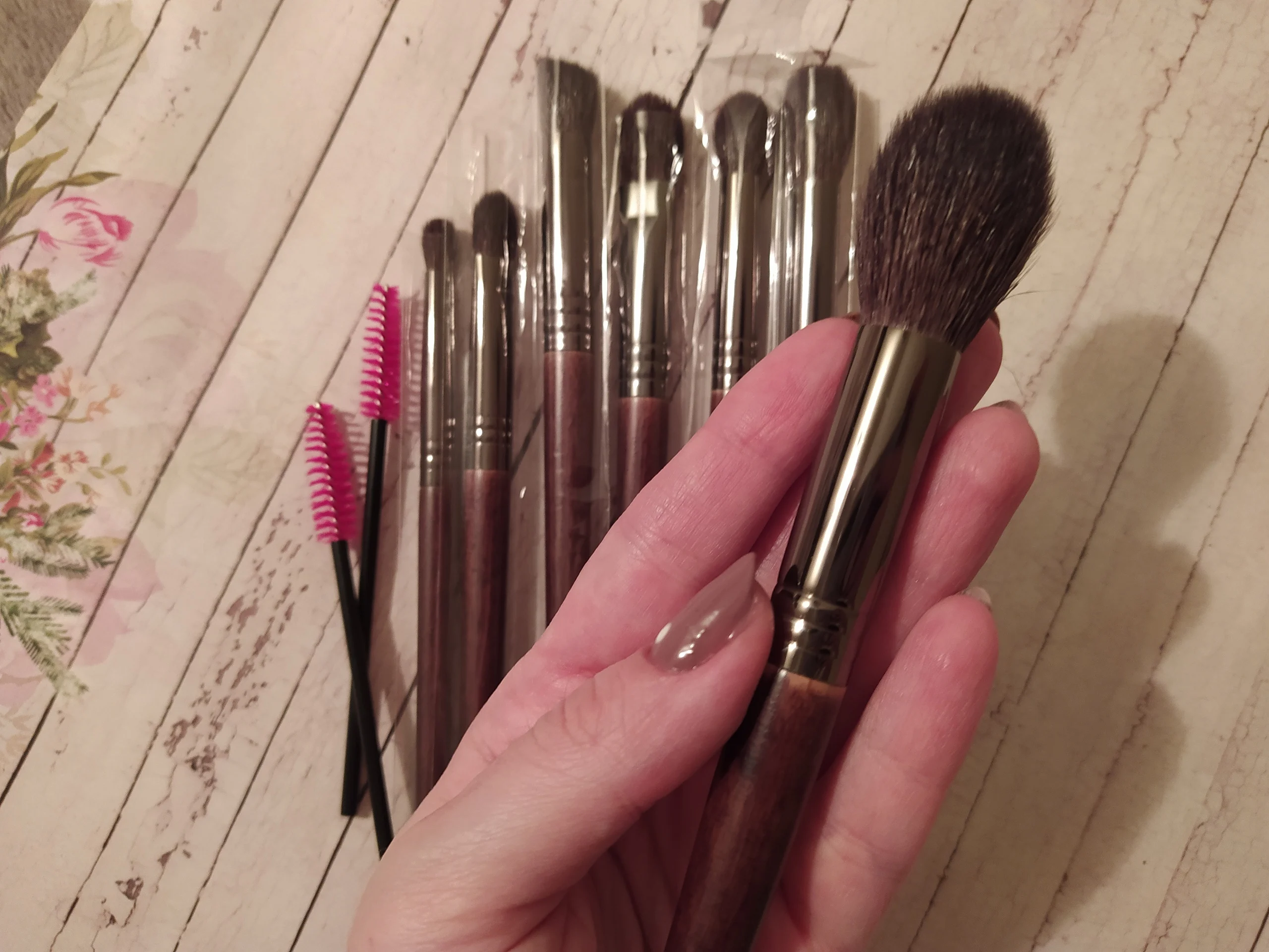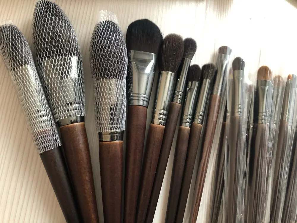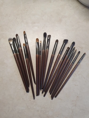 Отличные кисти. Все как в описании сет из 18 штук это всё, что вам может пригодится для глаз, 07 универсальная мягкая, отлично консилер тушует и припудривать точечно удобно. Самая маленькая для стрелок супер удобная. По ощущениям, действительно натуральный ворс, кроме чисто синтетических для кремовых текстур. Ну и выглядят они супер стильно, деревянная скошенная ручка. набиты плотно, не лезут.