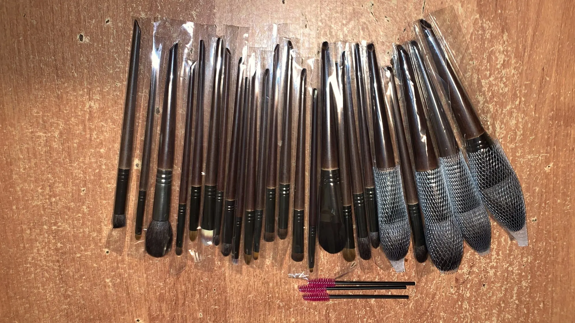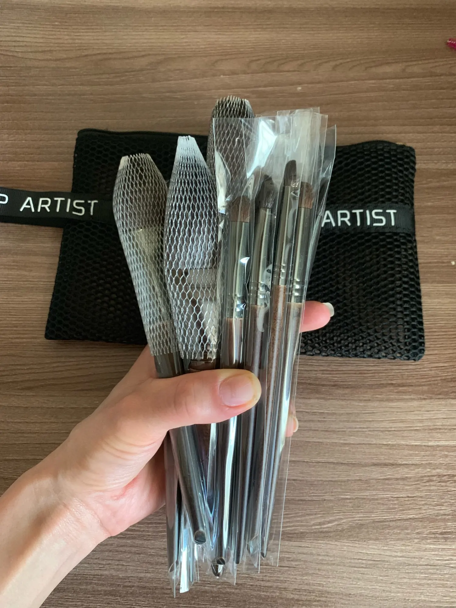 Очень классные кисти, мягкие, нет никакого постороннего химозного запаха, упаковано все было отлично: большие кисти в сетку и каждая кисть в пакетике. Продавец положил 2 дополнительные сеточки для кистей и 2 щеточки для бровей и ресниц, спасибо, рекомендую
