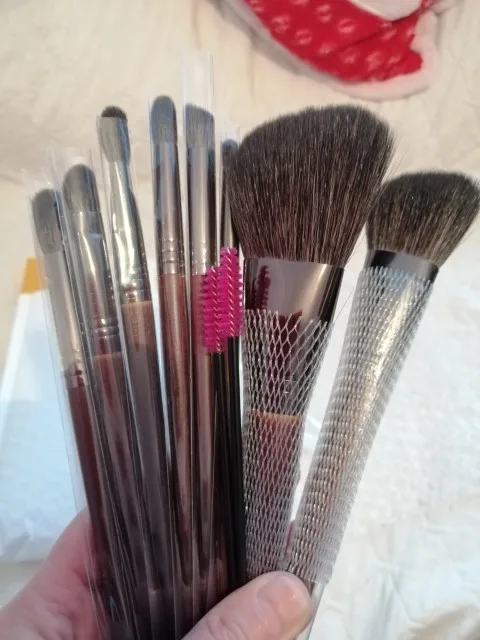 Я люблю эти кисти, они очень универсальны. Я купил их 11,11, и они прибыли примерно через 10 дней. Я использовал их, вымыл и высушил. Они не выпустили ни одного волоска. Они очень мягкие и простые в обращении.