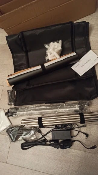 Шикарный короб. Удивительно, но качество очень хорошее. Купил 11.11 вышло с купонами и со скидкой 2600 примерно, удачно. Так же попадаются предложения примерно с такой же стоимостью, но они за доставку просят до 6т. встречал, будьте аккуратнее. Фото сделал на тел и наскоро обработал там же, свет достаточно хорош. Единственное, скобы крепления светодиодов несколько на вид не прочные, аккуратнее с ними, в остальном всё супер! И два тройника крепления запасные. Спасибо продавцу! за такой подарок. Кстати, в комплекте идёт штативчик для телефона, очень порадовал ))
