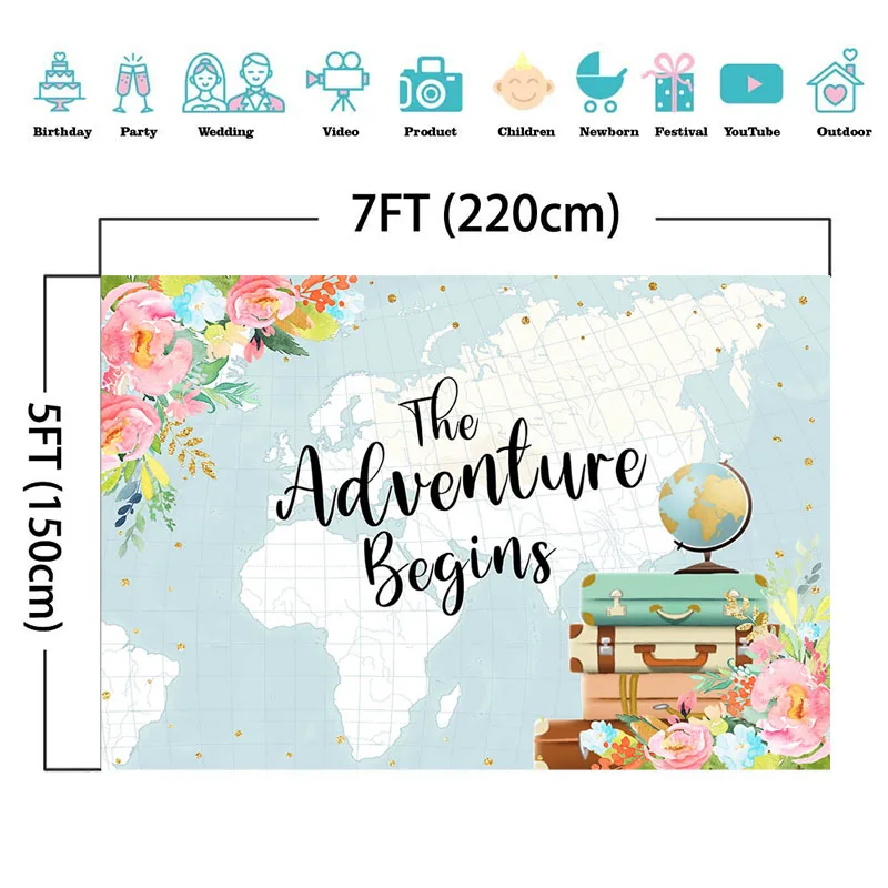 Фон Mocsicka с изображением приключений мира для детских фотографий детский день рождения с изображением цветов