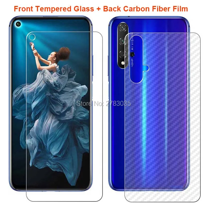 Для Huawei Honor 20 Honor20 / Pro / 20S 1 комплект = мягкая задняя пленка из углеродного волокна + прозрачное закаленное стекло, передняя защита экрана