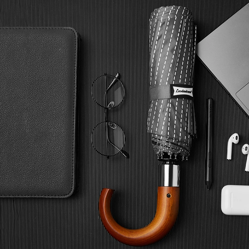 Зонт от солнца Leodauknow, автоматический складной, ветрозащитный, с деревянной ручкой, 10 к
