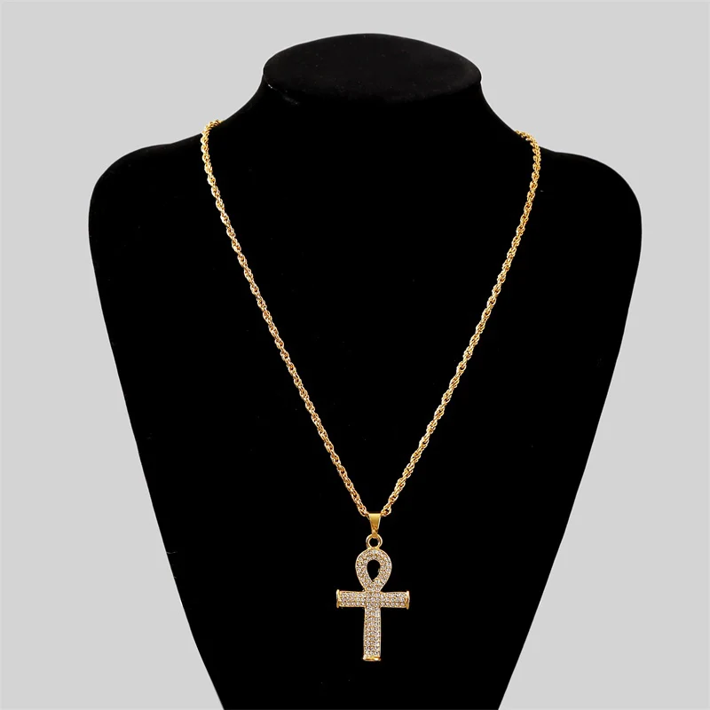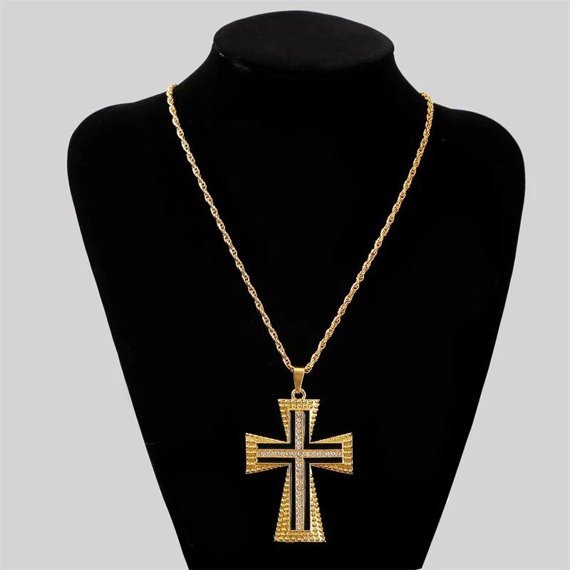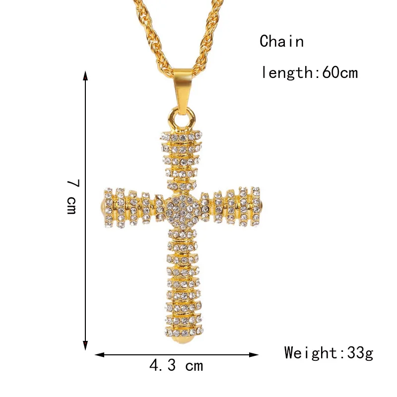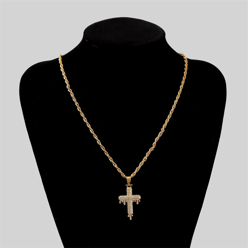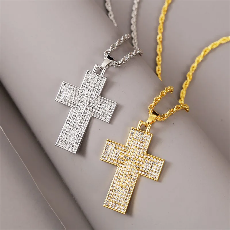 Женское и мужское ожерелье с подвеской-крестиком, украшение в стиле хип-хоп, стразы золотистогосеребристого цвета