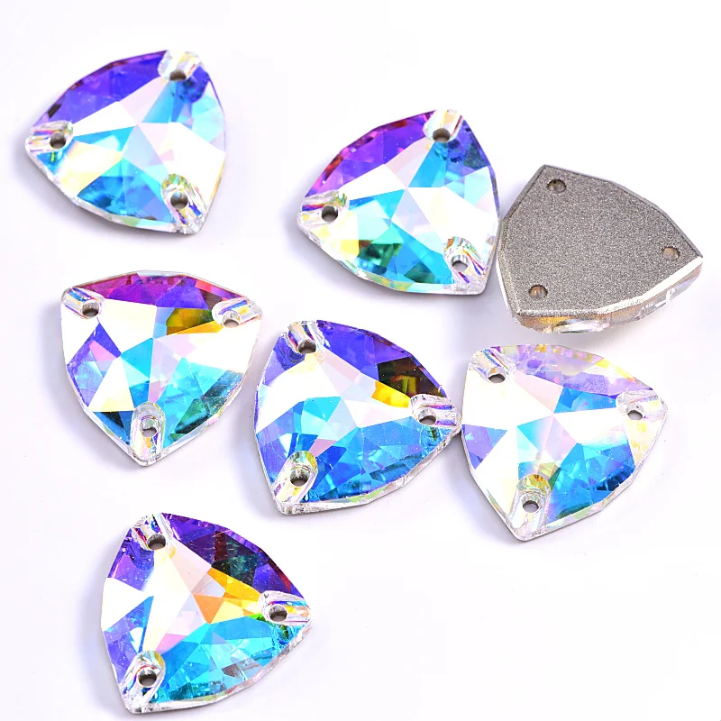 Стеклянные стразы AAAAA с тремя углами, 12 мм 16 мм 22 мм, Пришивные декоративные камни для одежды F0071