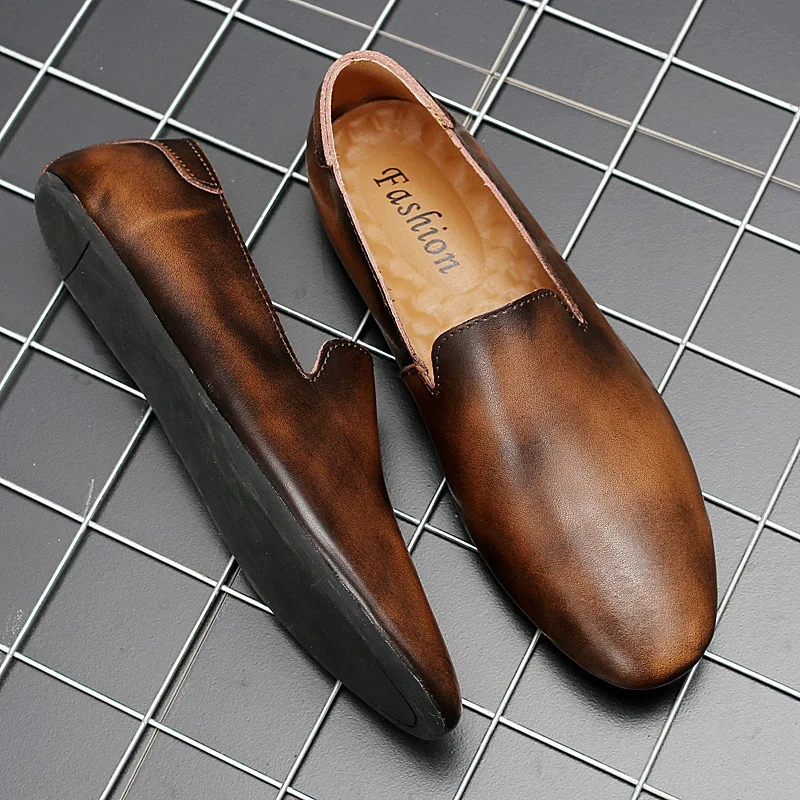 Мокасины мужские из натуральной кожи, туфли для вождения, без застежки, мягкие дышащие, Мокасины, обувь на плоской подошве, ручная работа, 2020