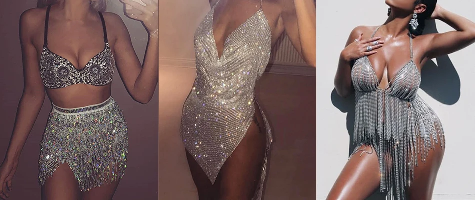 Комплект из двух предметов с бриллиантовыми блестками, бюстгальтер с открытой спиной, комплект с мини-юбкой